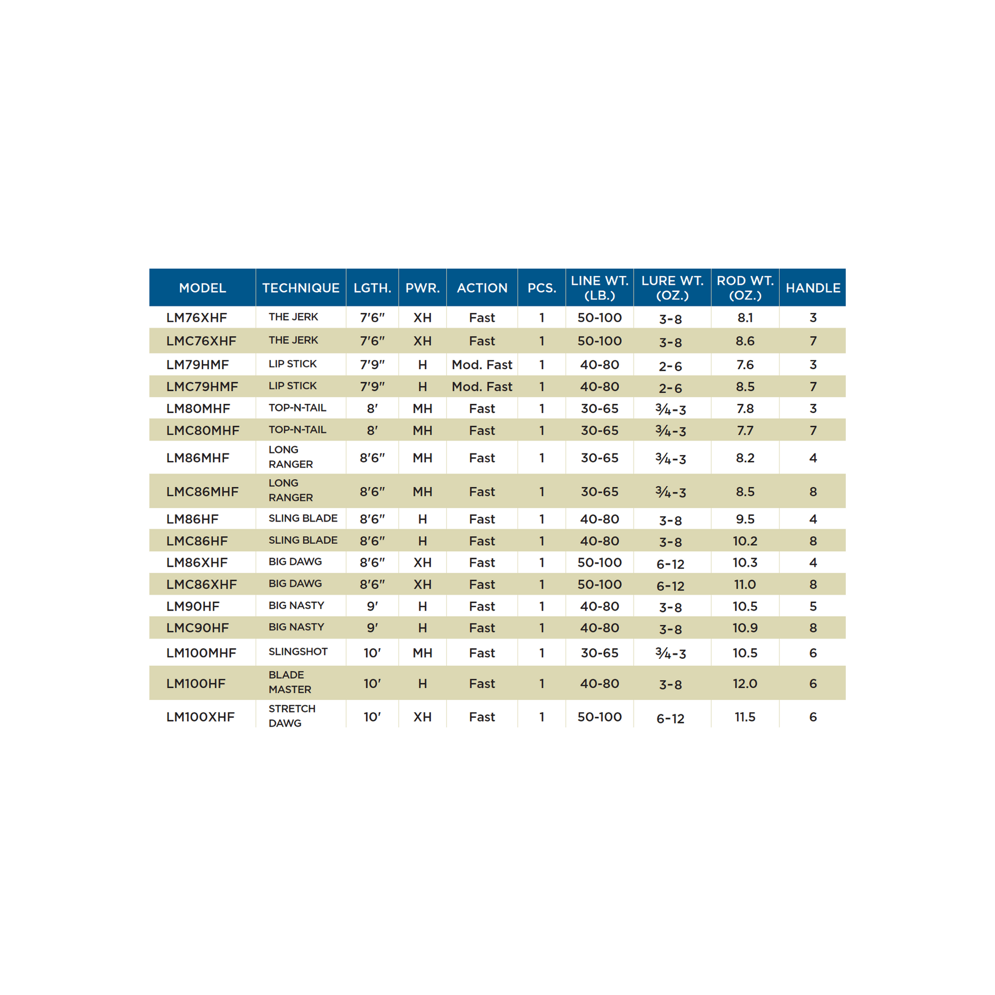 New hybrid blank technologies make these rods the lightest, strongest and most responsive Legend Tournaments ever!