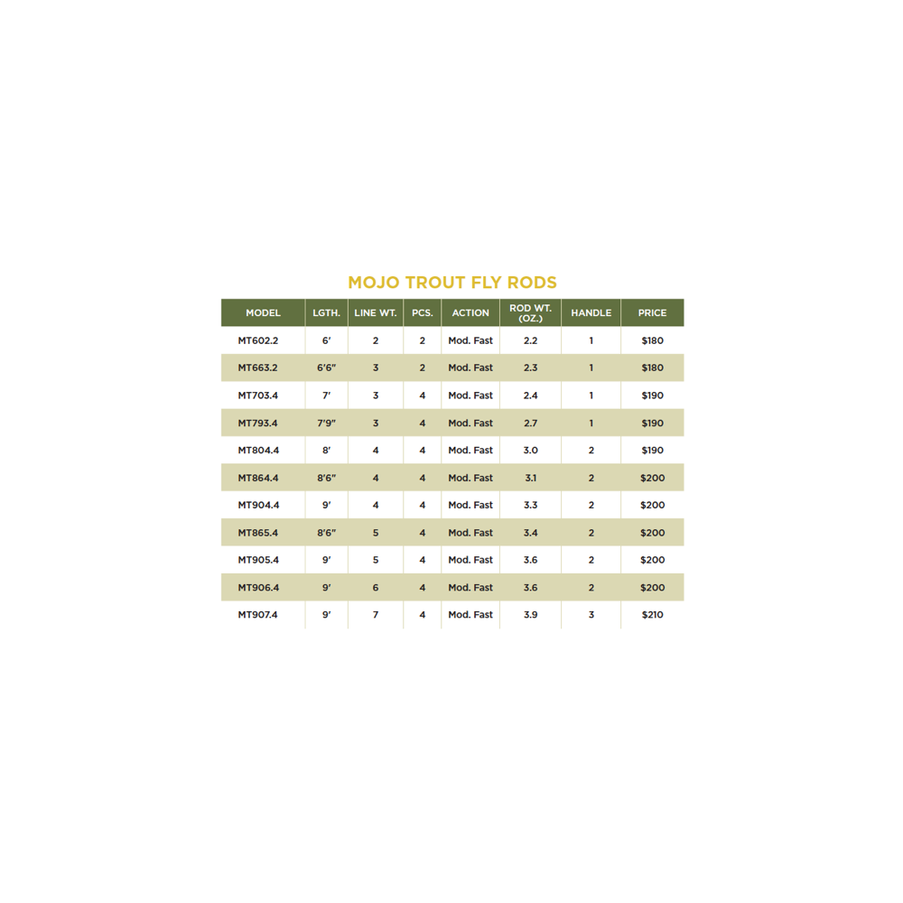 - MOJO TROUT® RODS feature: