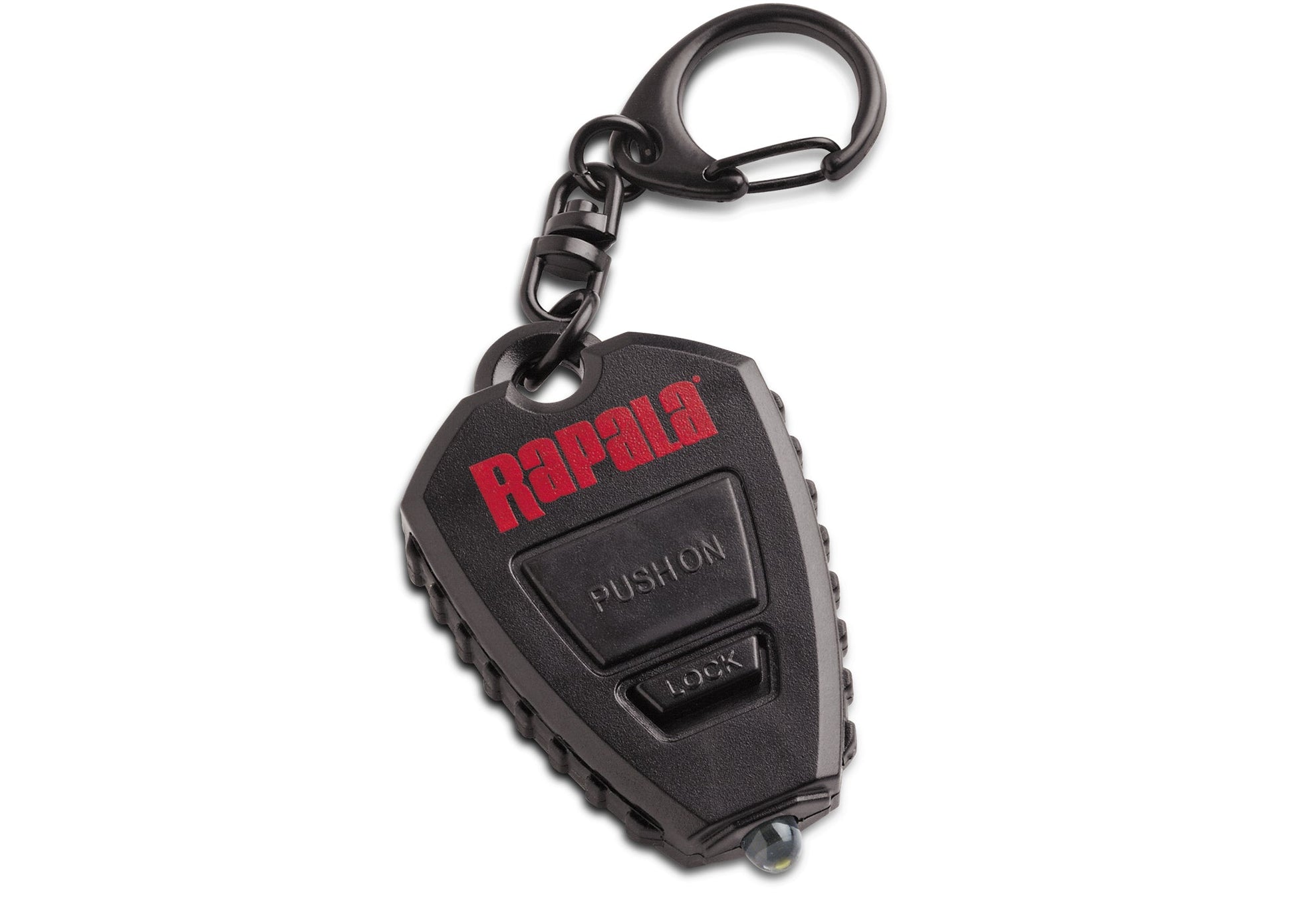 Upgraded design of an essential tool, the Rapalaยฎ Fisherman's Pinch Light features excellent lighting power with locking on/off switch. Clasp swivel key chain. 12 lumens and a 9 hour continuous run time. Powered by 2 Lithium coin batteries included.